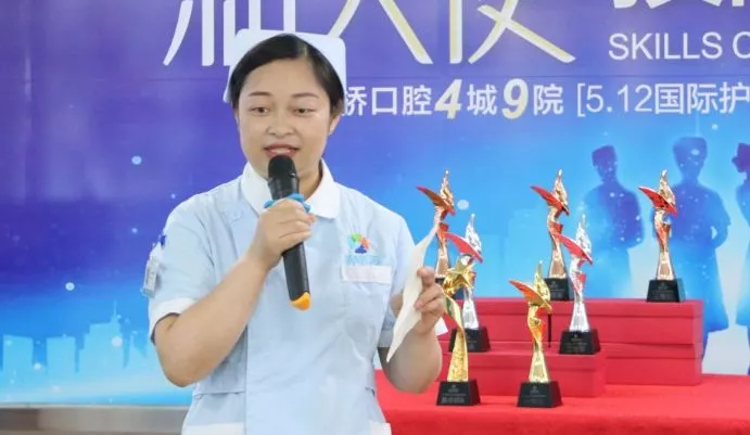 为了给参赛护士们打气鼓劲,赛前还特别邀请了拥有二十多年临床护理经验、新桥口腔资深护师蔡红梅来到现场分享工作心得。