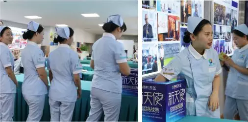 真正的考验开始了!按照抽签次序,选手依次走进比赛诊间,根据自己事先选择的挑战项目开始护理技能实战比拼。