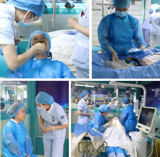 这是一例模拟种植牙手术的护理流程考核,在确认顾客的身体状况、准备手术物品,以及配合医生手术、指导顾客术后护理等一系列操作中,参赛选手全心投入,动作流畅到位,团队沟通有效快捷,表现出扎实的基本功底。