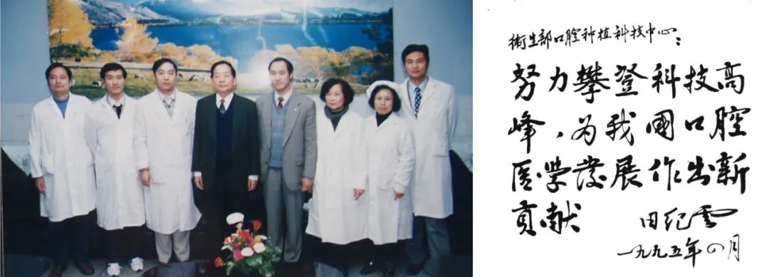 1996年,领导莅临华西牙种植医院并题词(右四为刘果生)