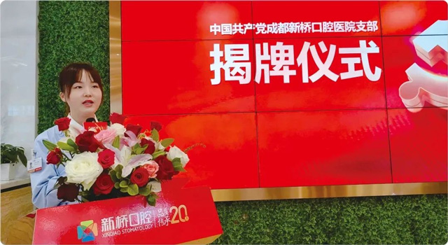 2023年5月12日,中共成都新桥口腔医院支部正式挂牌,蒋越有了一个新的身份——党支部书记。对年轻的她来说,被推选为党支书既是组织的信任和认可,也有一些压力。