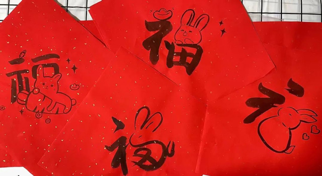 有一年春节,蒋越给院区的同事每人量身创作了一幅画,每一幅上都有不同的“福”字和新年祝语。儿时的爱好,让她的生活多姿多彩。