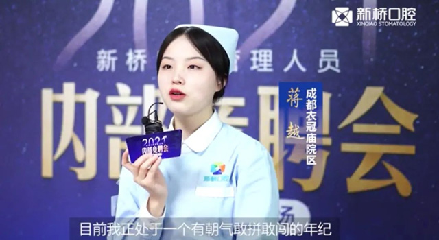 2021年底,蒋越参加了新桥口腔管理人员内部竞聘会,成功竞聘护士长一职,成为新桥口腔的储备护士长。