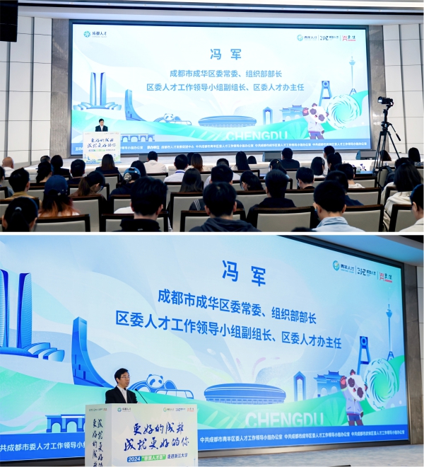 成都市成华区委常委、组织部部长,区委人才工作领导小组副组长、区委人才办主任冯军在致辞中表示:成都良好的发展空间和生活环境,吸引了大批青年人才,成都市是优质资源汇聚之地,热忱欢迎浙大学子们来成都安居乐业。