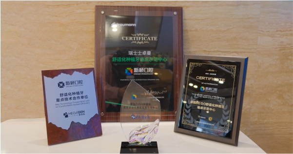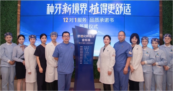 发布会现场,新桥口腔舒适化种植牙八项金标准首次对外公布;由12位医护代表组成的舒适化种植牙团队成员联合签署品质服务承诺书;全球四大知名种植体品牌为新桥口腔颁发舒适化种植牙认证授牌:新桥口腔半全口舒适化种植牙顾客现场分享“笑着走出手术室”的诊疗体验。