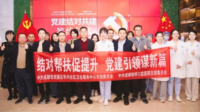 为深入贯彻落实党的二十大精神,根据《区委卫健工委医疗机构党建结对帮扶工作方案》要求,为深化公立医疗机构与民营医院党建“结对帮扶”机制,实现医疗机构党组织优势互补,中国共产党成都市武侯区华兴社区卫生服务中心支部与中国共产党成都新桥口腔医院支部举行结对共建签约仪式。