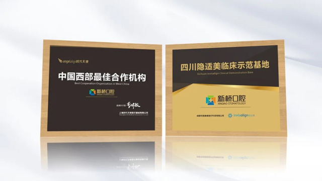 第八个世界正畸健康日,隐形正畸民族品牌——时代天使、隐形正畸国际品牌——隐适美分别为新桥口腔颁发“中国西部最佳合作机构”、“四川隐适美临床示范基地”荣誉奖牌。新桥口腔也成为了中国西部唯一一家同时揽获双誉的口腔连锁品牌。