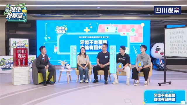 四川广播电视台四川观察《健康观察室》直播间特邀新桥口腔儿童早矫专家为家长们解惑儿童青少年暑期牙齿矫正热点问题,并现场解答家长提问。本次直播超过20万观众在线观看。