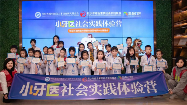 新桥口腔获得四川省青少年综合素质社会实践组委会“四川省青少年综合素质社会实践基地”授牌,“新桥口腔小牙医社会实践体验营启动仪式”也同期举行,四川省城乡融合人才培育研究基金会邻微基金授予新桥口腔“爱心企业”荣誉称号。