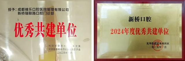 2025年1月,新桥口腔凭借在社区共建工作中的卓越表现,再度荣获 “清水河社区优秀共建单位”授牌,连续两年获得此项殊荣。