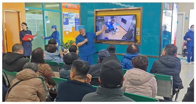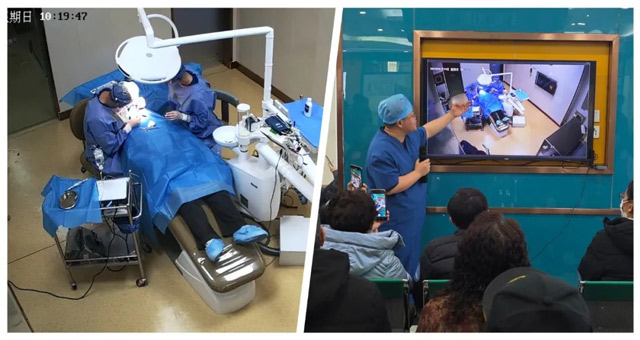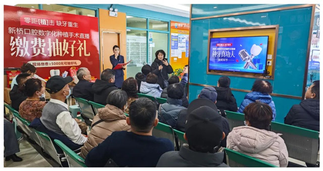 上午10:12分,手术正式开始。定量麻醉、逐级备洞、精准植入、严密缝合,王旭东主任稳中有序的操作在实时大屏上同步呈现,伴随着刘晓娟医生的专业讲解,观众们第一次“零距离”了解了种植牙的真面目。