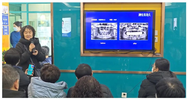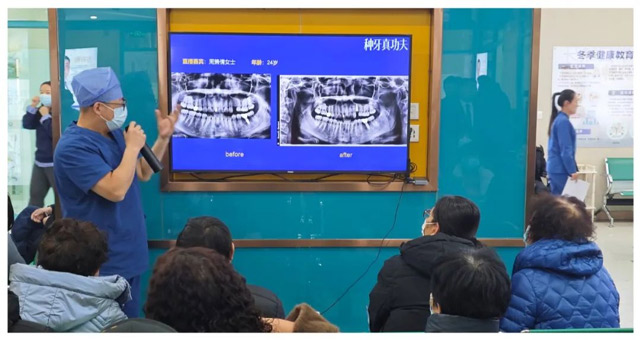 专业热情的王旭东主任,在简单介绍了周女士种牙的诊疗思路和手术操作要点后,还为缺牙市民们提供了“专家亲诊”服务,现场一对一答疑并给出针对性的治疗意见。