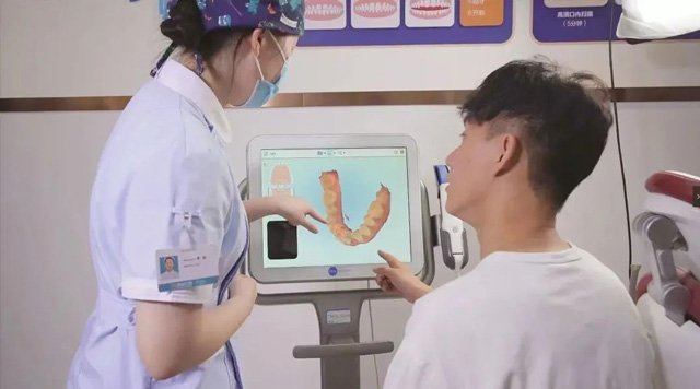 在数字化种植中心,顾客张女士刚刚进行了3D数码口扫,仅5分钟,系统便通过三维重建技术生成立体影像,不仅能直观呈现口腔细节,还能通过动态模拟图像实现治疗效果的可视化预判。