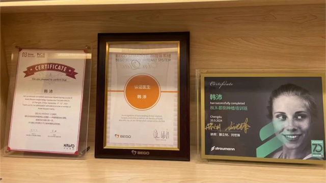 短短几年,韩沛就完成了令人惊叹的蜕变。从刚接触口腔种植领域的新人,成长为能独当一面的行家。他凭借着不懈的努力与钻研,逐步掌握了单颗、多颗常规种植,前牙美学种植、微创种植、即刻种植,上颌窦内外提升,以及半口全口缺失病例的无牙颌种植修复治疗等一系列先进技术,成为了一名技术全面、经验丰富的口腔种植医生。