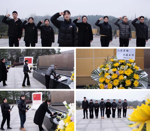 青山有幸埋忠骨,苍松翠柏慰忠魂,成都市烈士陵园安葬着为国家建设作出巨大牺牲的英雄们。清晨时分,中国共产党成都新桥口腔医院支部成员们一起来到烈士纪念碑前默哀肃立,敬献花束,在庄严肃穆的氛围中,新桥口腔党支部书记蒋越带领支部成员一起重温入党誓词。