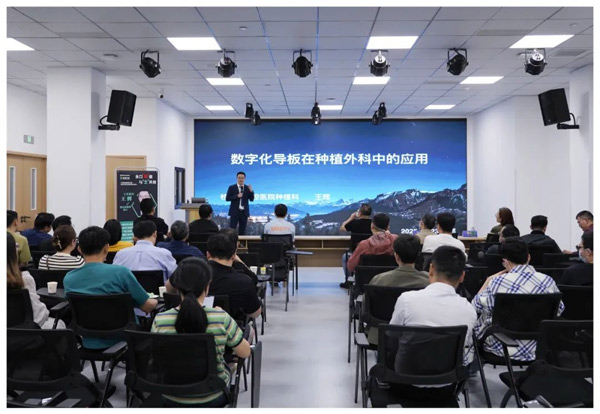 研讨会现场,王辉主任带来了《数字化导板在种植外科中的应用》的主题分享,并就数字化导板的各项适应症如微创种植、无牙颌种植、疑难复杂种植等,同在场医生进行了深入探讨。“随着数字化导板技术的成熟与普及,其在无牙颌种植领域已被广泛应用于临床辅助治疗。数字化导板具有一定的技术优势,能够帮助医生在临床上减少误差。”同时,王辉主任还表示:“术中应用数字化导板作为辅助,能够帮助多项技术实现效用最大化,如改良式上颌窦外提升术、个性化3D打印钛网引导骨再生等。”