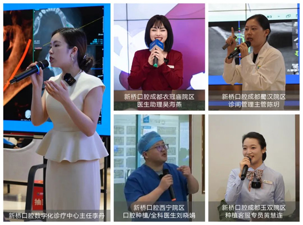 新桥口腔数字化诊疗中心主任李丹(左)及各院区一线专业人士现场讲解
