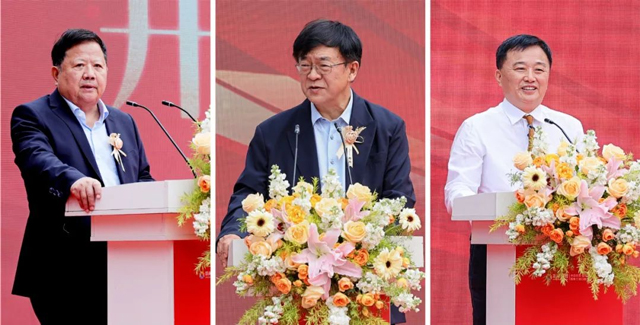 四川省口腔医学会副会长兼秘书长郭锡久教授(左),四川大学华西口腔医院田卫东教授(中),知名眼科专家、新桥口腔顾客代表姚晓明教授(右)致辞