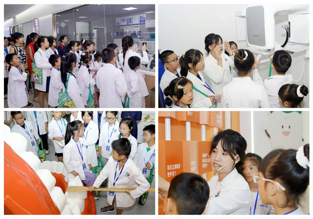 上午9点,在新桥口腔儿童早期矫正专科工作人员的带领下,小朋友们依次参观了医院各科室,了解了牙医工作环境,学习了口腔健康知识,并亲身体验了牙医工作。从认识牙科设备到掌握正确刷牙方法,从了解牙医常用器械到模拟简单操作,孩子们在轻松愉快的氛围中,既增长了口腔健康知识,又对牙医职业有了更深刻的认识。