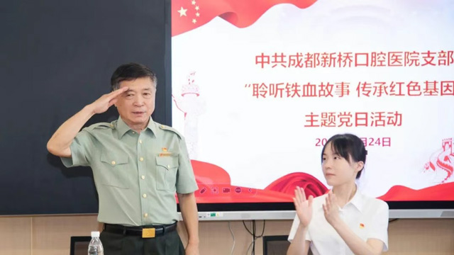 中共成都新桥口腔医院支部开展“聆听铁血故事 传承红色基因”建军节主题党日活动