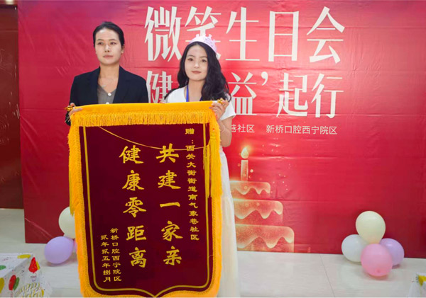 活动尾声,新桥口腔西宁院区向南气象巷社区赠送了一面写有“共建一家亲,健康零距离”的锦旗,以此感谢社区对公益事业的支持。