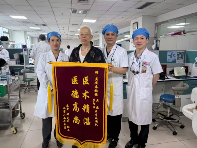 还记得深造期间,一位接受种植二期治疗的老人,只因我一句关心的问候,就说“一定要送面锦旗”。这件事给了我很大触动:一句平常的话都能让患者感到安心,那我为何不在沟通上更细致些?也正是这份触动,让我更加注重与患者的沟通细节,从接诊时的耐心交流,到结合患者实际情况制定个性化治疗方案,再到术后的持续随访关怀,每一个环节我都力求严谨规范。我始终希望,能在细节上多留一份心,在服务上多尽一份力,让患者在治疗过程中少些焦虑、多些安心。