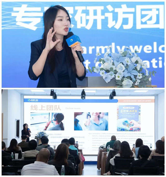 在参观结束后,研访会的交流环节持续深入。新桥口腔项目部经理郑杨凡就如何实现医疗价值与患者体验的双重提升,分享了新桥口腔在品牌建设与患者服务方面的创新实践。