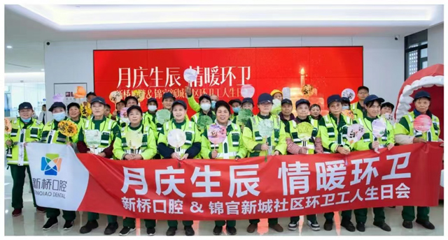 冬日蓉城,暖意流淌。为积极营造全社会尊重、关爱“城市美容师”的浓厚氛围,11月18日,新桥口腔成都总院(成都人南新桥口腔医院)联合成都市火车南站街道锦官新城社区,举办了一场以“月庆生辰 情暖环卫”为主题的温馨生日会,以实际行动致敬城市环卫工作者的辛勤付出,传递口腔健康关怀。