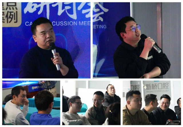 随后,新桥口腔成都玉双院区种植专科主任余国庆和华西口腔硕士刘今朝医生分别带来了全口即刻种植和极限上颌窦提升案例的分享。余国庆医生根据一则真人案例,对全口即刻种植在临床上的操作要点与难点进行了分析,并表示:“即刻负重种植的前提条件是顾客本身不需要进行上颌窦提升或其他骨增量等复杂手术操作,同时要尽可能利用更多的硬骨支持,以期获得和维持种植体的初期稳定性及继发性稳定性。”刘今朝医生则以上颌窦提升为议题,与在场医生展开了热烈的交流:“除具有创伤小、风险小、术后反应较轻等优点之外,在临床上采用上颌窦内提升术所需植入的骨粉量也较少,并且不需要骨膜。术后CBCT影像显示,可见种植术后成骨良好、二期手术检测种植体稳定性良好。”